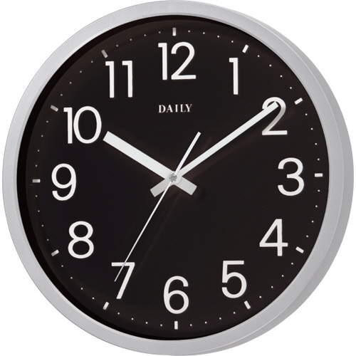 | 商品仕様 | ●寸法/直径331×奥行43mm ●重量/780g ●色/盤面色:黒 ●使用電池/単3マンガン電池1本(別売) ●秒針音/有 ●材質/枠:プラスチック、風防:ガラス |