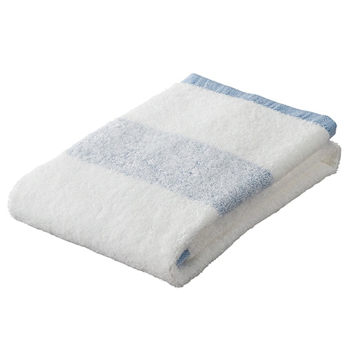 丸眞 今治シンプルボーダータオル フェイスタオル ブルー 1枚