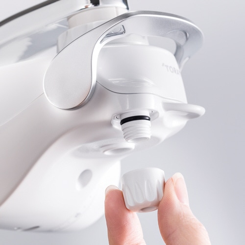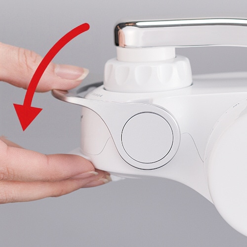 ラクラク切替え「タッチレバー」。カートリッジを本体内部に取り付ける内包式。