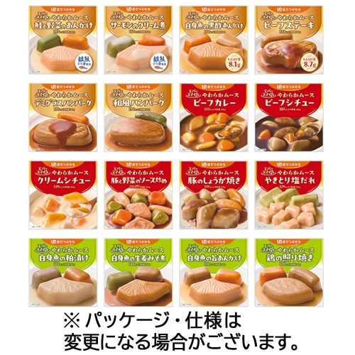 | 商品仕様 | ●種類/おかず ●内容量/100g ●アソート内容/鮭と野菜のあんかけ、サーモンのクリーム煮、白身魚の黒酢あんかけ、ビーフステーキ、デミグラスハンバーグ、和風ハンバーグ、ビーフカレー、ビーフシチュー、クリームシチュー、豚と野菜のソース炒め、豚のしょうが焼き、やきとり塩だれ、白身魚の粕漬け、白身魚の生姜みそ煮、白身魚の旨あんかけ、鶏の照り焼き ●賞味期限/商品の発送時点で、賞味期限まで残り120日以上の商品をお届けします。 ●その他仕様/●16種詰合せ ●備考/※内容量は1食あたり ※メーカー都合により、パッケージデザインおよびセット内容・仕様が変更になる場合がございます。 |