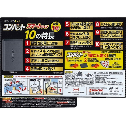 | 商品仕様 | ●対象害虫/ゴキブリ ●使用可能日数/約1年 ●その他仕様/●防除用医薬部外品 ●備考/※販売名:コンバット(小型)Fb ●シリーズ名/コンバット |