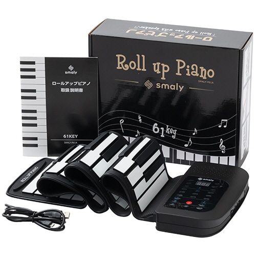 | 商品仕様 | ●種類/ロールアップピアノ ●寸法/W1020×D220×H30mm ●重量/950g ●材質/ABS樹脂、シリコン ●電源/リチウムイオンバッテリー内蔵(USB-typeC充電) ●付属品/USB充電ケーブル ●その他仕様/●鍵盤数:61 |