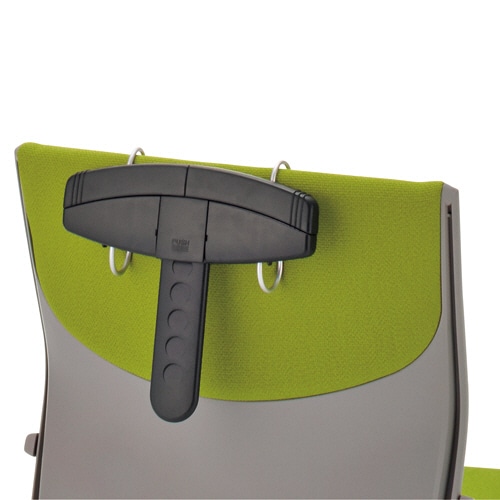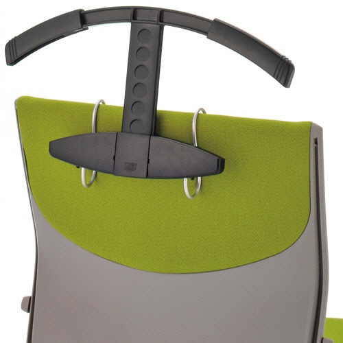 オフィスチェアーの背もたれ部分にアームを引っ掛けて使用できるハンガー。