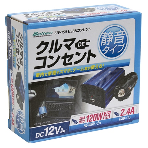 | 商品仕様 | ●寸法/W70×D111×H47mm ●その他仕様/●定格出力:120W ●最大瞬間出力:150W ●USB出力:2.4A ●保証期間:1年 |