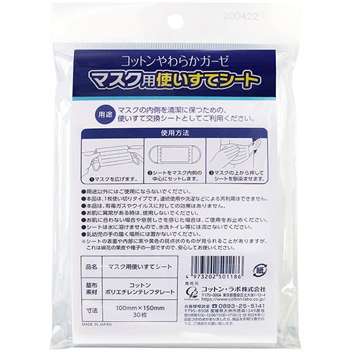 コットン・ラボ マスク用使いすてシート 1パック(30枚)