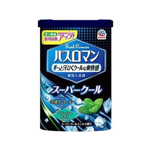 商品仕様 | ●香り/スーパークールミントの香り ●内容量/600g ●色/クールミントブルーのお湯(透明) ●成分/有効成分:炭酸水素Na、その他の成分:無水ケイ酸・メントール・グリシン・カモミラエキス-1(カミツレエキス)・セイヨウハッカエキス(ペパーミントエキス)・エタノール・乾燥硫酸Na・サリチル酸・BG・香料・青1 ●その他仕様/●効能・効果:疲労回復、肩のこり、荒れ性、腰痛、あせも、しっしん、にきび、ひび、しもやけ、あかぎれ、うちみ、くじき、神経痛、リウマチ、痔、冷え症、産前産後の冷え症 ●生産国:日本 ●備考/※販売名:バスロマンクールBN-1(オレンジの香り)バスロマンクールBS-1 ●シリーズ名/バスロマン |