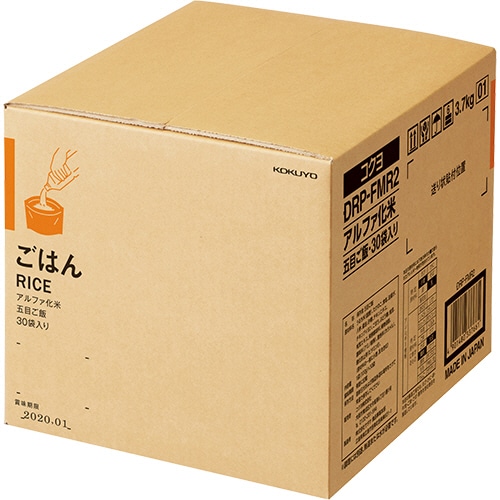 | 商品仕様 | ●味/五目ご飯 ●賞味期限/5年 ●復元方法/水またはお湯 ●カロリー/379kcal ●重量/3.7kg ●付属品/スプーン ●その他仕様/●ケース外寸:W280×D317×H260mm ●注水量:ご飯/160ml、おかゆ/290ml ●でき上がり量:ご飯/260g、雑炊/390g ●備考/※カロリー・できあがり量は1袋あたり ※重量はケース重量 ●保存期間(月数)/54 |