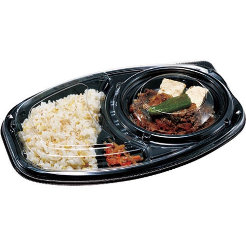 主菜部分が内嵌合で、汁物総菜等に適した弁当容器です。