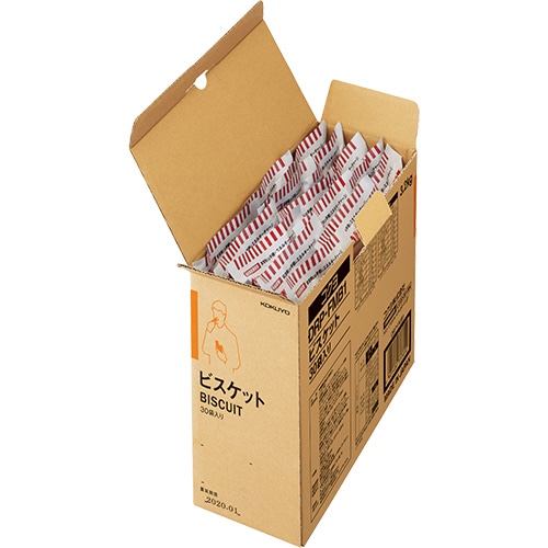 キャビネットにピッタリ収まる食事セット。長期保存が可能な備蓄用ビスケット