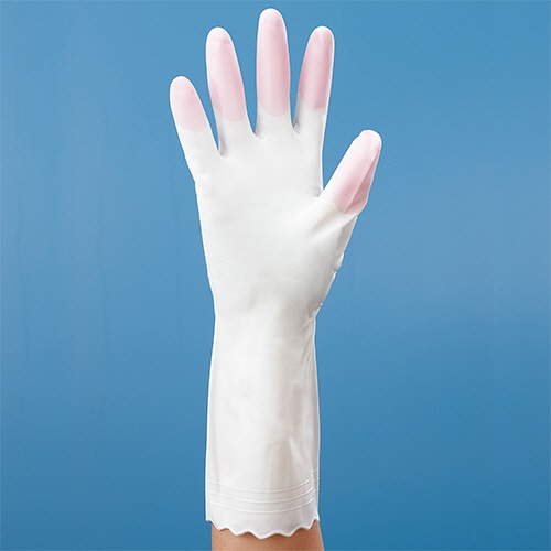 | 商品仕様 | ●サイズ/M ●寸法/全長30×手のひら周り20×中指長さ7.4cm ●手のひらの幅/約10cm ●色/ピンク ●材質/表:塩化ビニル樹脂(非フタル酸エステル系可塑剤)、裏:植毛なし ●備考/※調理用には使用しない。 ※塩化ビニル樹脂は60℃以上の熱に弱いので、熱いものには触れない。 ※硬化することがあるので、高濃度の薬品や溶剤(ガソリン、ベンジン等)に長時間使用しない。 |