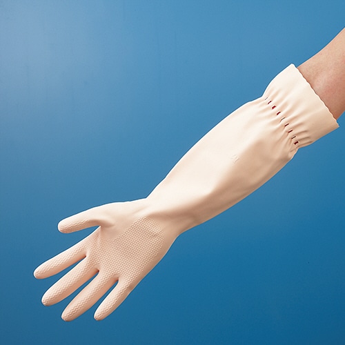 | 商品仕様 | ●サイズ/M ●寸法/全長42×手のひら周り19.5×中指長さ8cm ●手のひらの幅/約9.7cm ●食品衛生法/適合 ●色/ピンク ●材質/表:天然ゴム、裏:綿(植毛) |