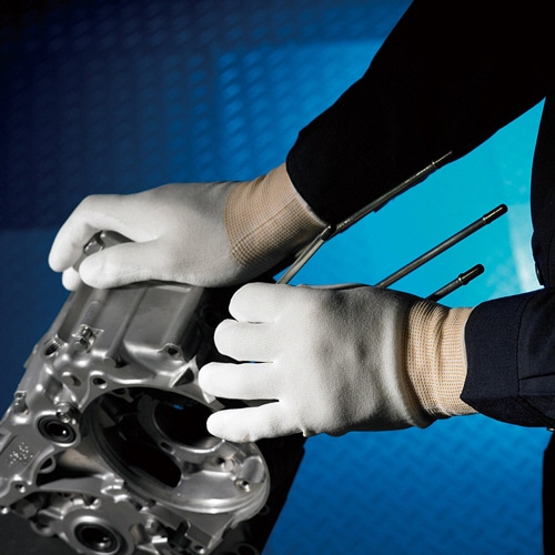 ●油や水を使う作業でも抜群のグリップ力を発揮する、精密作業用手袋のXLサイズ・ホワイト、10双です。