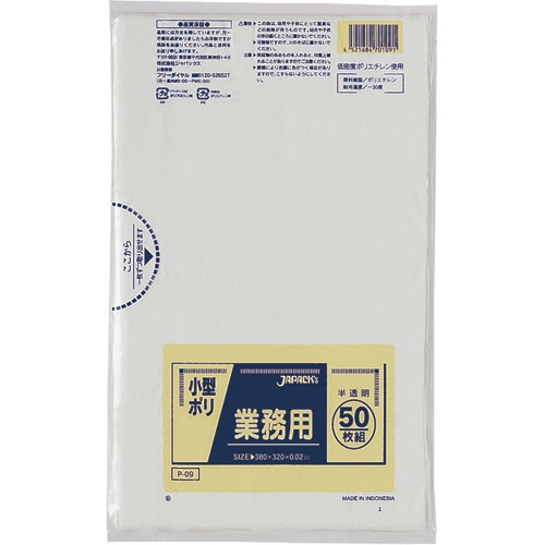 ジャパックス 業務用小型ポリ袋 半透明 P-09 1パック(50枚)