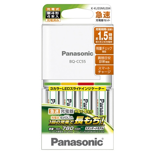 パナソニック 急速充電器セット 4列 充電式EVOLTA単4形4本付 K-KJ55MLE04 1パック