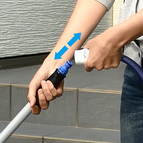 ●水を出しながら掃除ができます。手の届かない車の天井に。