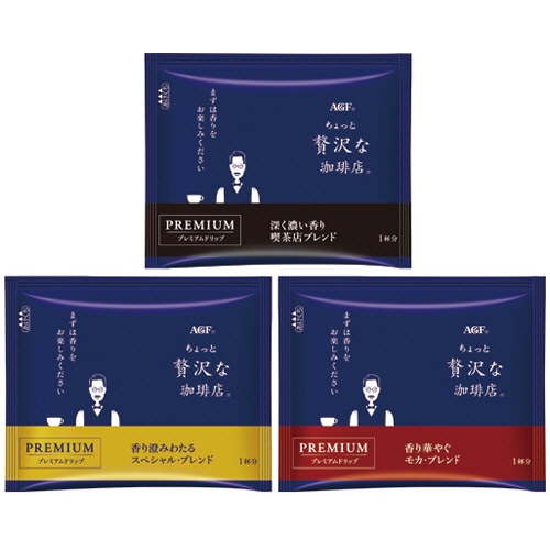 | 商品仕様 | ●アソート内容/スペシャルブレンド、モカブレンド、喫茶店ブレンド×各14袋 ●内容量/8g ●産地/コロンビア、ブラジル、他 ●賞味期限/商品の発送時点で、賞味期限まで残り120日以上の商品をお届けします。 ●備考/※内容量は1袋あたり ※メーカー都合により、パッケージデザインおよびセット内容・仕様が変更になる場合がございます。 ●シリーズ名/ちょっと贅沢な珈琲店 |