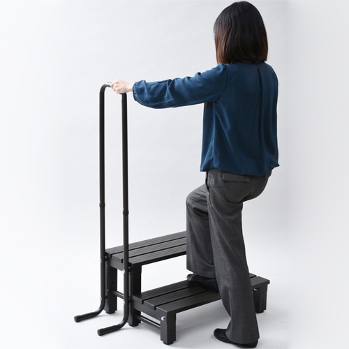 YAMAZEN 片取っ手付きアルミ2段踏み台 ダークブラウン YM-8002H(DBR) 1台