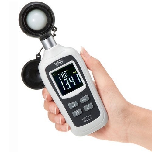 小型サイズで携帯性に優れた、気温測定機能付きのデジタル照度計。