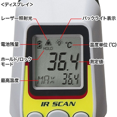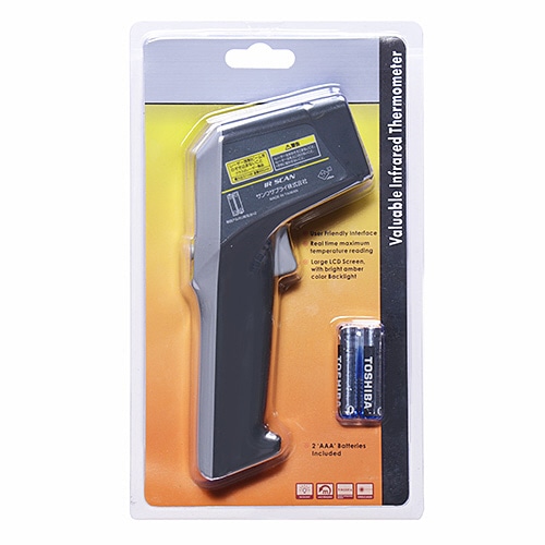 | 商品仕様 | ●寸法/W153×D114.3×H47.6mm ●重量/177g ●材質/ABS樹脂 ●その他仕様/●測定範囲:-38~365℃ ●精度:対象温度-38~0℃/±(2.5℃+(0-表示温度)×0.05℃)、対象温度0~365℃/±2.5%もしくは2.5℃の大きい方、対象温度15~35℃・温度範囲25℃の時/±1.5℃ ●分解能:0.2℃(-9.9~199℃)、それ以外は0.1℃ ●放射率:0.95/0.70(初期設定は0.95) ●測定距離と測定範囲:12:1(120cmの距離に対して直径10cmの範囲を測定) ●動作温度:10~50℃ ●連続使用時間:約14時間(アルカリ乾電池を使用時) ●電源:単四乾電池×2本 ●保証期間:6ケ月 ●備考/※重量は電池含む ※人体用ではありません。 ※レーザーを人に向けて照射しないでください。また、レーザー照射部をのぞき込まないでください。 |