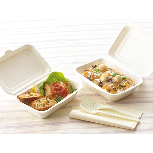 天然素材「バガス」を原料としたフタ付フードパック。