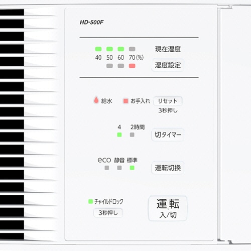 | 商品仕様 | ●適用床面積(プレハブ)/14畳 ●加湿能力/500ml/h ●タンク容量/4L ●連続加湿時間/8時間(標準) ●運転音/約30dB(最大) ●消費電力/標準:163W、eco:11W ●寸法/W375×D190×H375mm ●重量/約4.5kg ●色/ホワイト ●その他仕様/●フィルター交換目安:5シーズン(1シーズン6ヵ月、1日8時間運転の場合) ●保証期間/3年 |