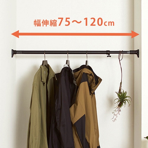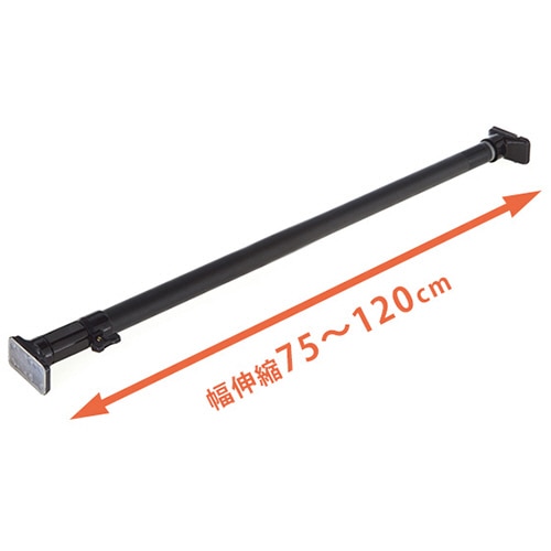 商品仕様 | ●サイズ/小 ●寸法/W75~120×D4×H7cm ●重量/0.61kg ●色/マットブラック ●材質/パイプ:鉄(エポキシ樹脂粉体塗装)、樹脂部品:ABS樹脂・PP樹脂・合成ゴム、金具・ねじ類:鉄(メッキ仕上げ) ●その他仕様/●耐荷重:約30~50kg |