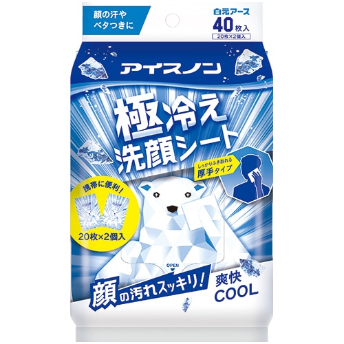白元アース アイスノン 極冷え洗顔シート ミントの香り 1パック(40枚:20枚×2個)