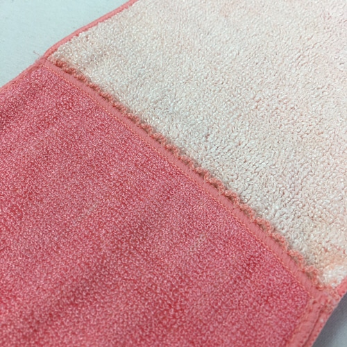 ●優しい肌触りの国産タオルハンカチ、色はピンクです。