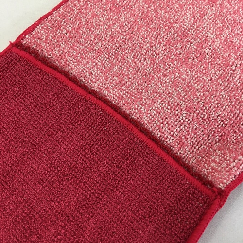 ●優しい肌触りの国産タオルハンカチ、色はレッドです。