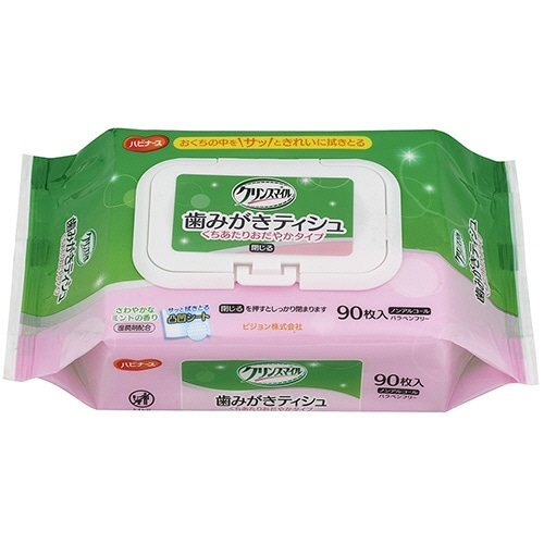 ●うるおい成分配合。くち当たりおだやかなノンアルコールタイプのハミガキティッシュ、90枚入