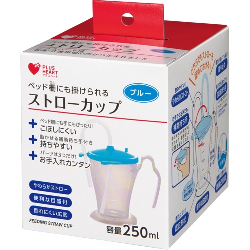 オオサキメディカル プラスハート ベッド柵にも掛けられる ストローカップ ブルー 250mL 1個