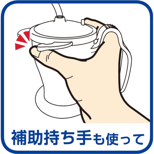 ●こぼしにくい。2段階持ち手がベッド柵にも手にもぴったりフィット。
