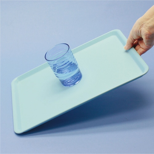 ●傾けてもすべりにくいノンスリップ加工がされた幅36cmのワインカラーのトレー。