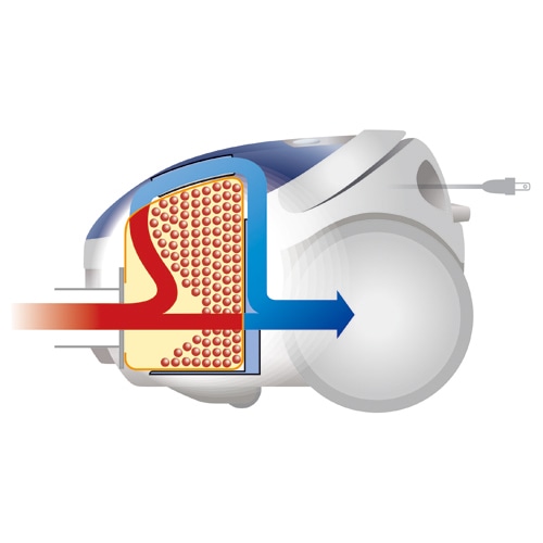 ●ゴミがたまってきても空気がスムーズに流れる「パワー長もち流路」。