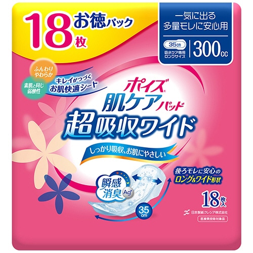 日本製紙クレシア ポイズ 肌ケアパッド 超吸収ワイド 一気に出る多量モレに安心用 300cc お徳パック 1パック(18枚)
