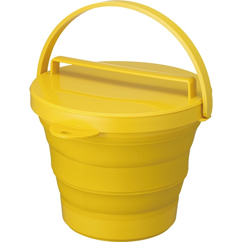 やわらか素材のソフトバケツ・フタ付き。使用後はたたんでコンパクトに収納。
