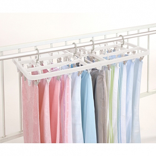 ●サイドフック付で、ズボンやシーツなど丈の長い洗濯物を干す時や、マンション等のベランダの低い物干し竿に干す時に便利です。