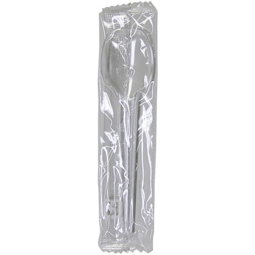 1本1本個包装されたプラスチック製の業務用デザートスプーン。