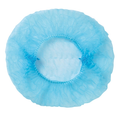 ●ブルーの衛生的な使い捨てヘアキャップ。