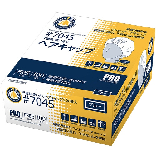 川西工業 不織布使いきりヘアキャップ ブルー 7045 1箱(100枚)