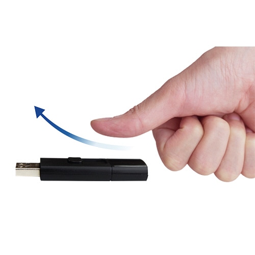 コネクタ部を本体に収納可能なスライド式筺体を採用。端子部を傷や汚れから保護。