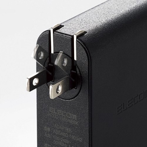 出張に適した、持運びに便利な回転スイングプラグを採用したノートパソコン用ACアダプタ。