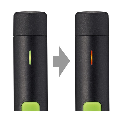 ●電池残量が少なくなると、通電表示ランプが緑色から赤色に変化し交換時期を示唆します。