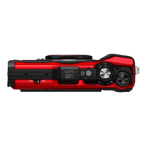 ●防水15m、防塵、耐衝撃2.1m、耐荷重100kgf、耐低温-10℃、耐結露といったタフ性能を実現したコンパクトデジタルカメラ「Tough TG-6」、本体色はレッドです。