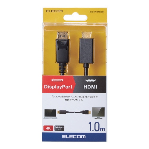 エレコム DisplayPort用HDMI変換ケーブル ブラック 1.0m RoHS指令準拠(10物質) CAC-DPHDMI10BK 1本
