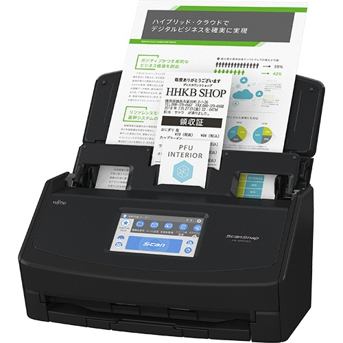 | 商品仕様 | ●対応用紙サイズ/A4、A5、A6、B5、B6、はがき、名刺、レター、リーガル、カスタムサイズ ●読取センサー/カラーCIS×2(表面×1、裏面×1) ●光学解像度/600dpi ●最大読取原稿サイズ/A4 ●読取速度/自動解像度モード・ノーマル・ファイン・スーパーファイン:両面・片面 40枚/分(A4縦)、エクセレント:両面・片面 10枚/分(A4縦) ●給紙方法/ADF、手差し ●両面同時読取/対応 ●インターフェース/USB3.2 Gen1(コネクタ:Type-B)、IEEE802.11a/b/g/n/ac 準拠 ●対応OS/Windows 10/8.1、macOS 10.12.4以降、iOS 12.0以降、iPadOS 13.0以降、Android 6.0以降、Fire OS 6.0以降 ●消費電力/動作時:17W以下、スリープ時:1.5W以下(USB接続・Wi-Fiオフ時)・1.6W以下(Wi-Fi接続時) ●電源/AC100V±10% ●寸法/W292×D494×H293mm ●重量/3.4kg ●その他仕様/●本体色:ブラック ●トレー収納時寸法:W292×D161×H152mm ●液晶:4.3型 TFTカラータッチパネル ●原稿搭載枚数:最大50枚(A4:80g/m2) ●光源:RGB3色LED |