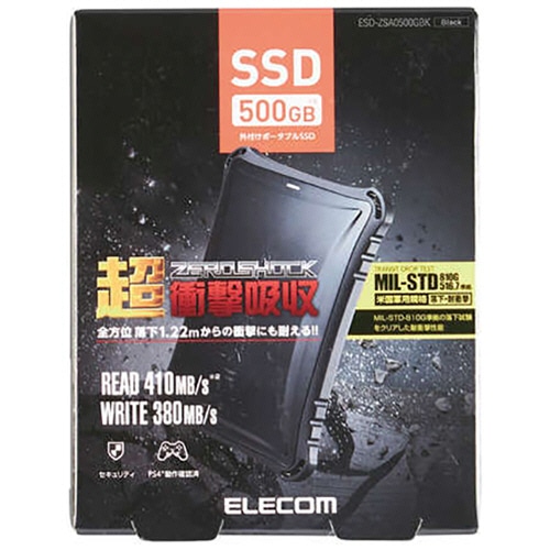 エレコム ZEROSHOCK外付けポータブルSSD 500GB ブラック ESD-ZSA0500GBK 1台