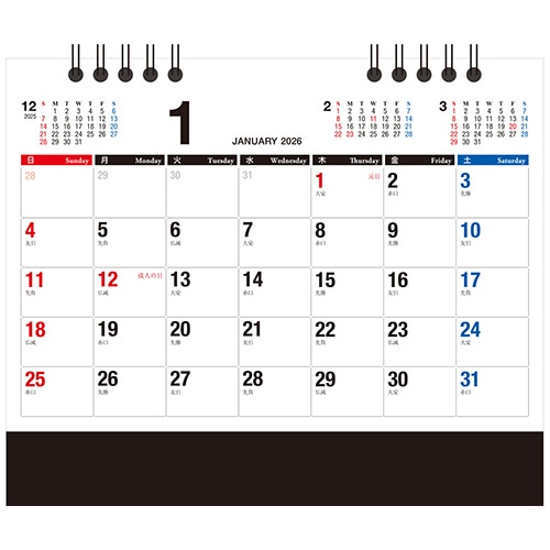 | 商品仕様 | ●タイプ/卓上 ●サイズ/B6判 ●寸法/タテ150×ヨコ180mm ●枚数/13枚 ●始まり曜日/日曜 ●表示内容/六曜 ●製本/ツインリング製本 ●材質/本文:エアクリーンペーパー、台紙:黒ボール紙(抗菌ニス加工) ●重量/65g ●製造国/日本 ●その他仕様/●個装形態:紙袋包装 |