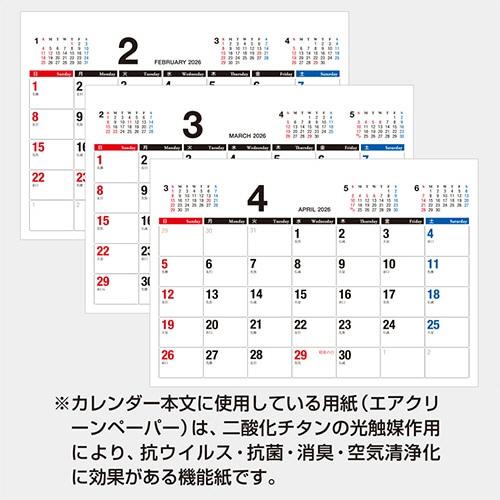 ●カレンダーは数字が太く、3色表示で見やすくなっています。