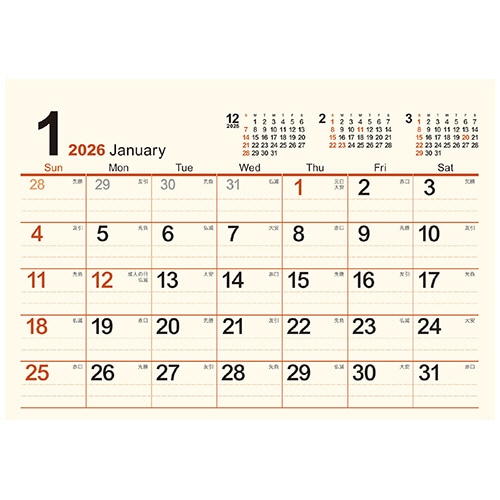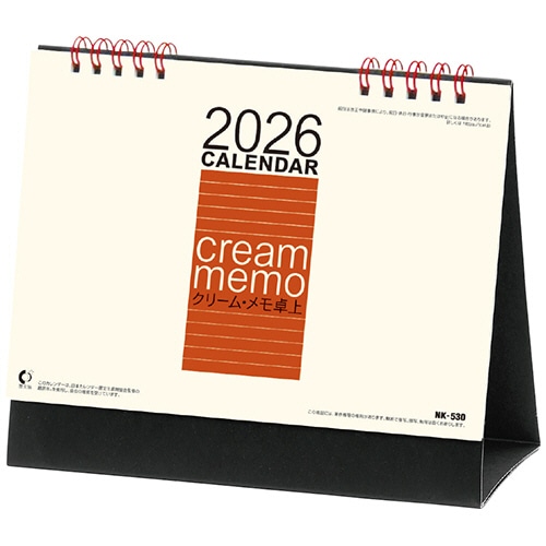 新日本カレンダー 卓上カレンダー クリーム・メモ卓上 2026年版 NK-530-2026 1冊